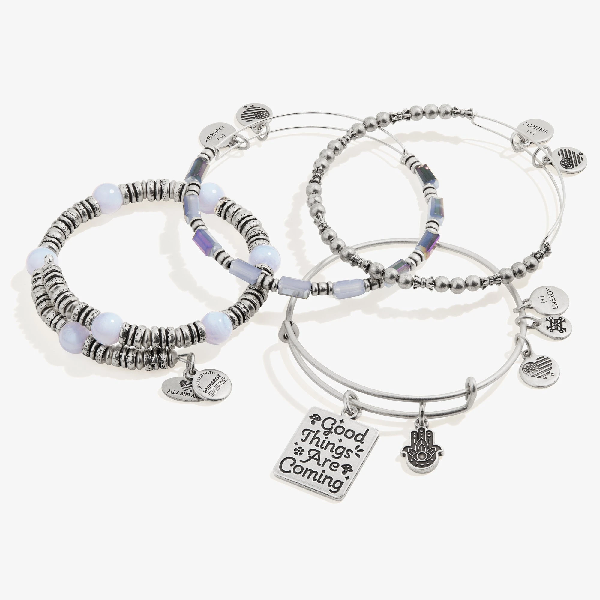 Be the first to review “‘Good Things Are Coming’ Charm Bangles, Set Of 4” Cancel reply
