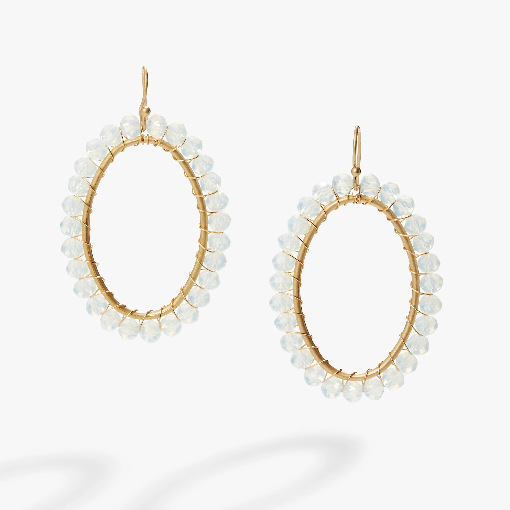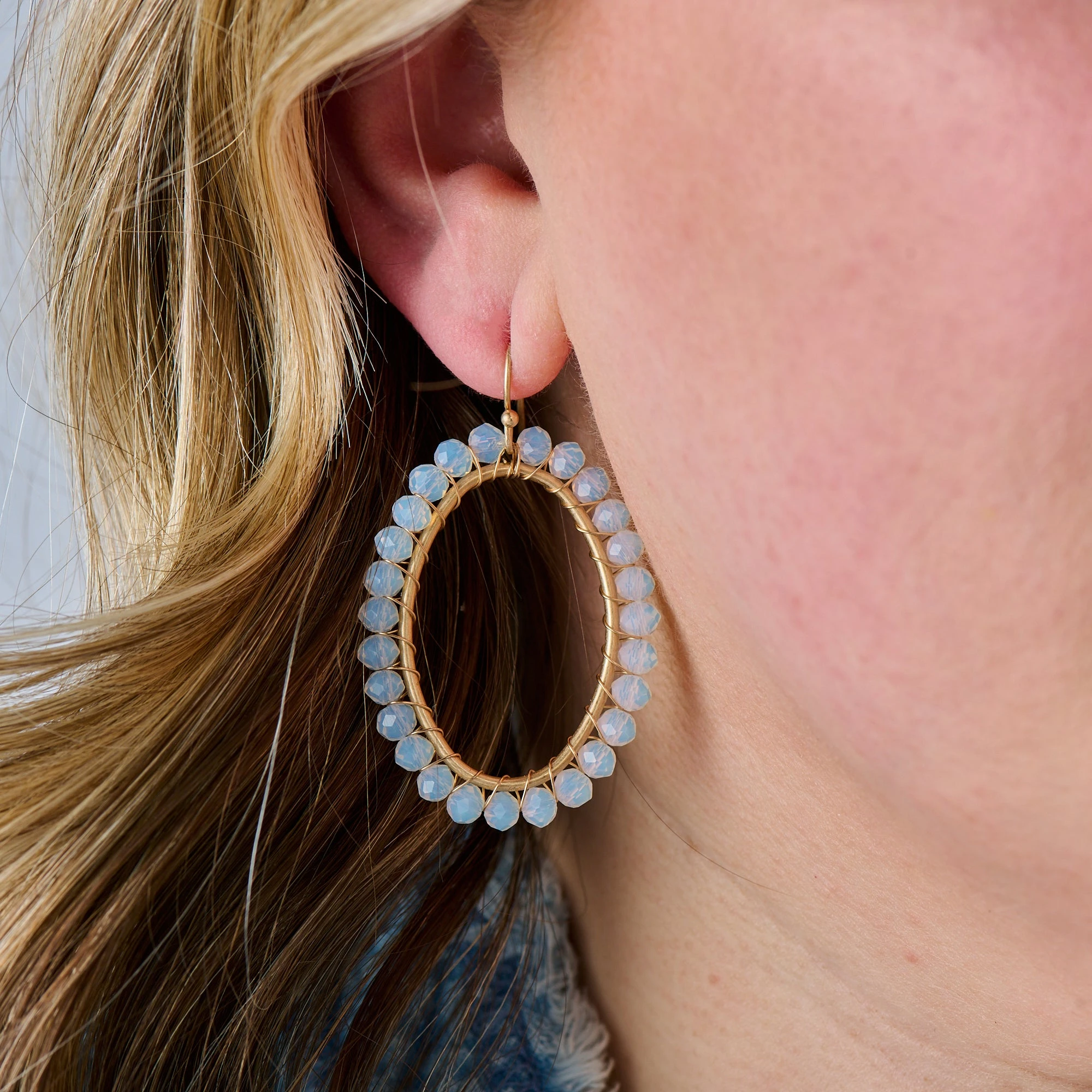 These Moonstone Beaded Hoops add an elegant and graceful touch to your outfit. Inspired by moonstones, these beaded earrings feature iridescent beads wrapped around gold-metal hoops. Add a touch of sparkle and elegance to any occasion!